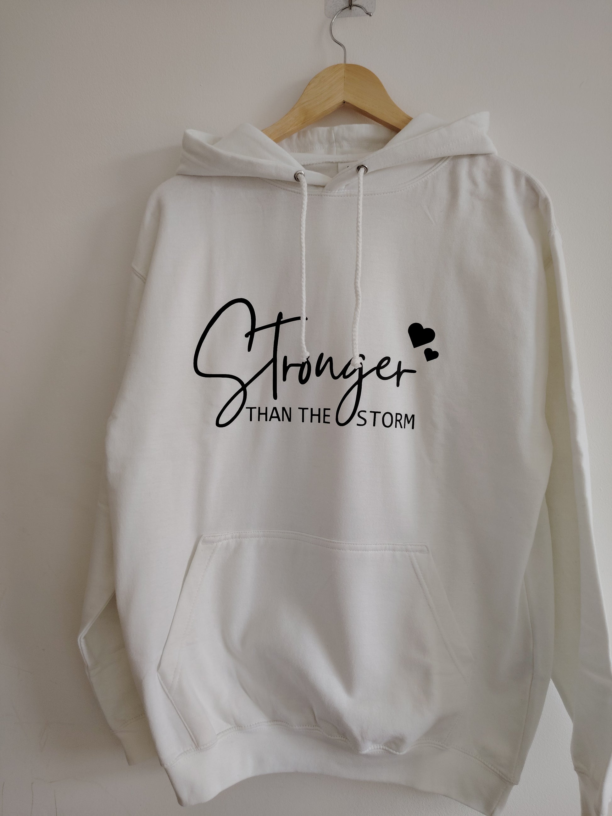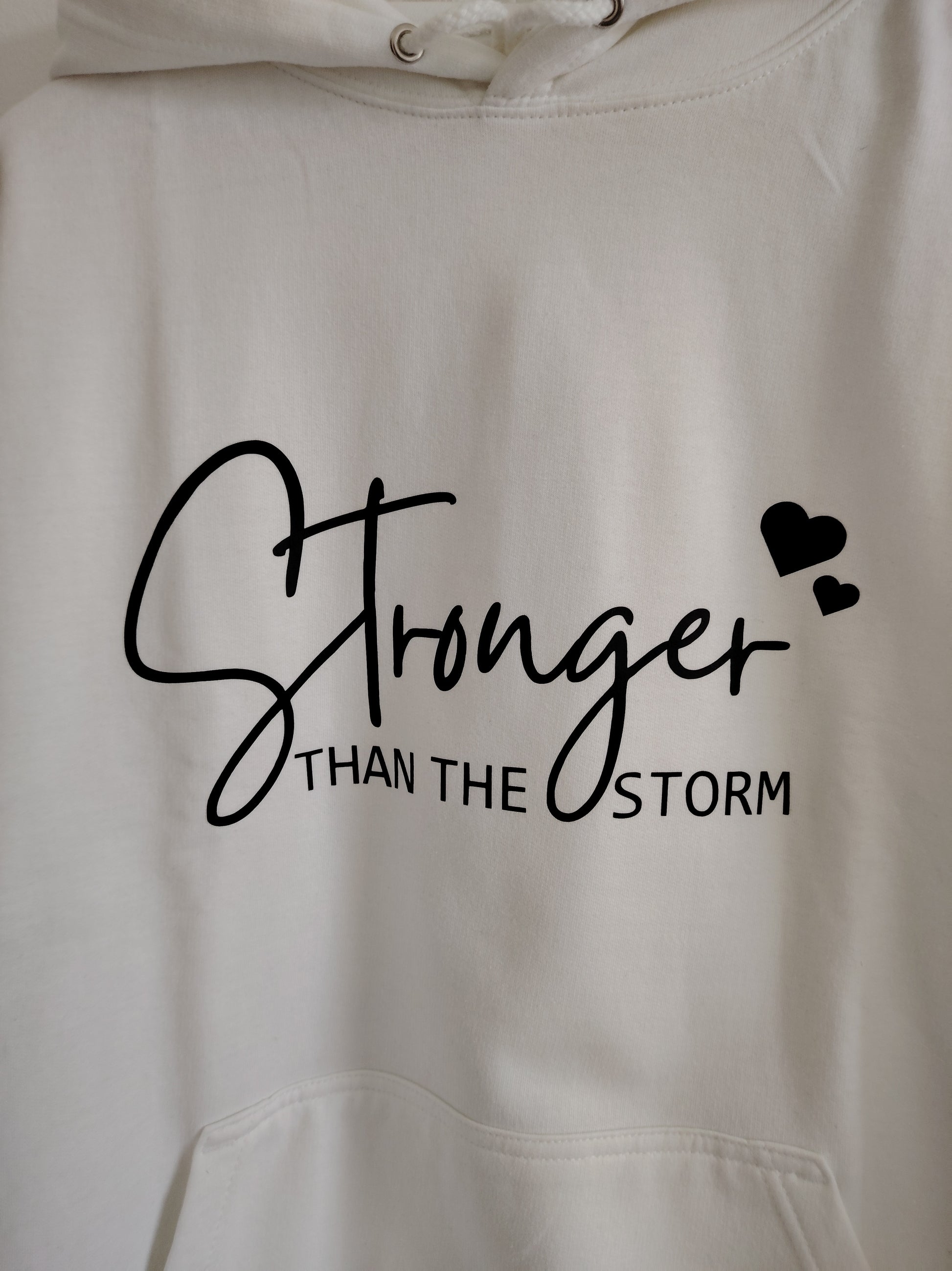 his empowering Stronger Than the Storm hoodie is more than just clothing, it’s a message of resilience and kindness. Designed with inspiring prints on both the front and back, it’s perfect for spreading positivity wherever you go.